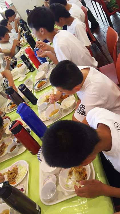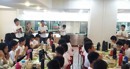 頑張ったので、おなかがすきました。 やっと夕食です。みんなでいただきます。 おいしいです。