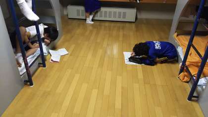 就寝準備。 班長会議、1日の反省、歯みがき 寝る準備ができました。 おやすみなさい。