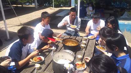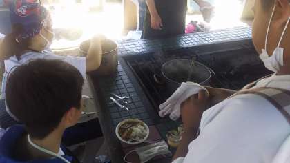 野外炊飯2 カレーの完成です。 苦労して作っただけあっておいしいです。