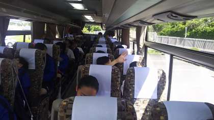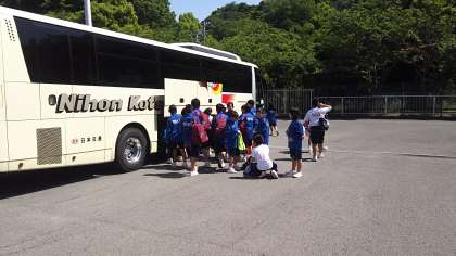 いよいよ学校にむけてバスに乗り込み、大池中学校に向かいます。