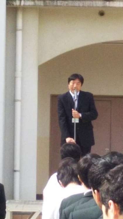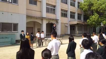 校長先生が職員朝礼が終わって、朝礼台に来られるまで、前日行われた、生徒専門委員会や生徒議会からの代表報告がありました。