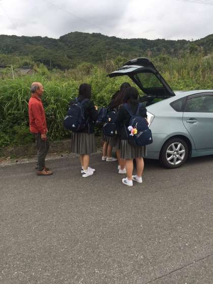 各民泊先の家族の方との対面の後は、さっそく車に分乗、各ご家庭へ!