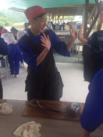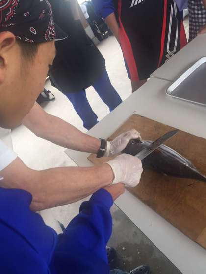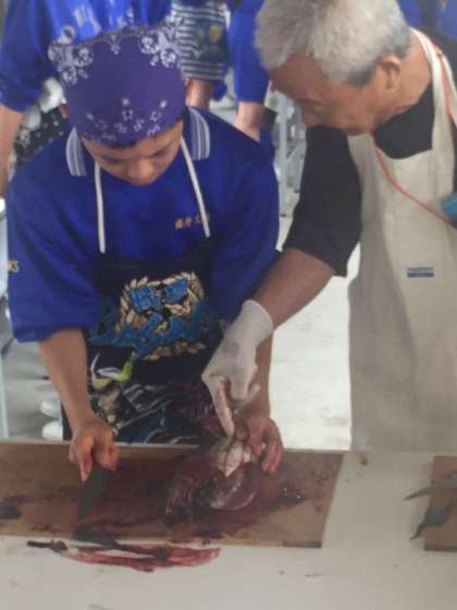 さあ、入刀! 先ずは頭を落とし、内臓を取る。 そして、3枚に。