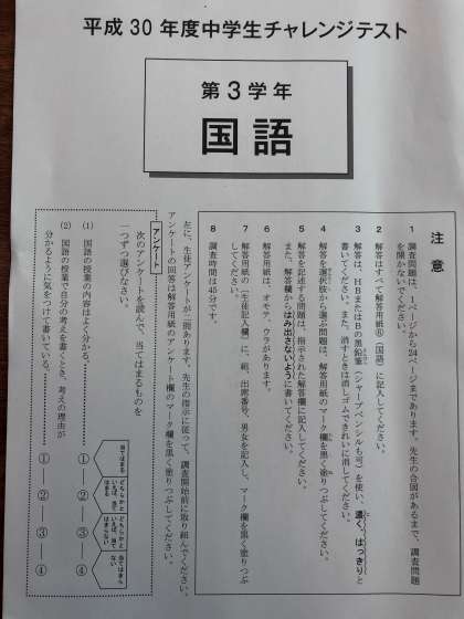 本日、延期となっていた3年チャレンジテストが実施されました。