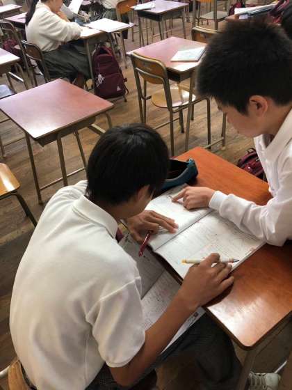 2学期中間テスト 其の一 公開日 2018/10/11 更新日 2018/10/11 お知らせ 2学期の中間考査が、今日から2日間かけて行われます。 この間、長い夏休みが終わり、2学期が始まったかと思っていたら、体育大会など学校 行事に追われて、時間感覚が麻痺しているのか、気がつけば中間考査。 本日1日目は1年生が理科・数学、2年生が理科・数学・美術、3年生は理科・数学・技 術家庭科です。 画像は、朝の1・2年生の教室、いわゆる朝勉の様子です。 いいね(0)