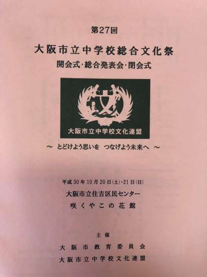 第27回 大阪市立中学校総合文化祭 其の一 公開日 2018/10/25 更新日 2018/10/25 お知らせ 先週の土曜日・日曜日に大阪市立住吉区民センターと鶴見区の咲くやこの花館にて、本年度の総文祭が開催されました。本校も美術部の作品が出展されました。 いいね(0)