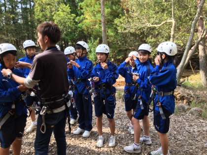 ここからはクラスごとに活動していきます。1組はアスレチック体験、2組はネイチャー