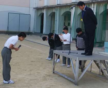 表彰状の伝達式の後、校長先生からそれぞれの小学校から入学し1年生は言うに及ば