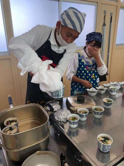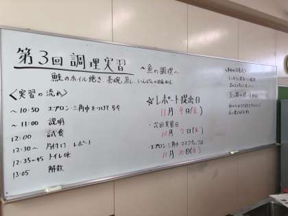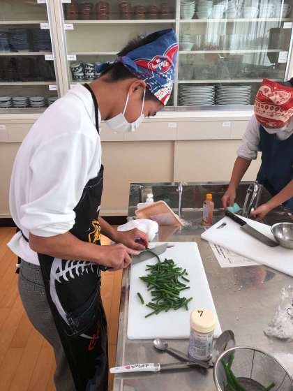 2年生、本年度3回目の調理実習です。今回はシャケのホイル焼きと茶碗蒸し、インゲ ンの胡麻和えです。