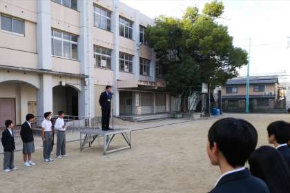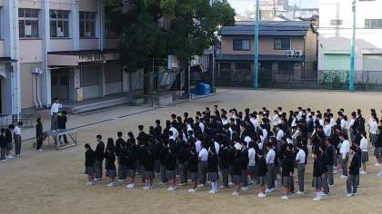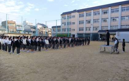 全校集会 公開日 2018/11/13 更新日 2018/11/13 お知らせ 昨日は月曜日定例の全校集会がありました。職員朝礼が終わり、校長先生が来られるま で生徒専門委員会が輪番で活動報告をします。校長先生がこられたら、生徒会の合図で全 校生徒で朝の挨拶です。 昨日は、表彰状の伝達式は無かったので、校長先生から先週の国際クラブの発表会、土 曜日に行われた吹奏楽部の定期演奏会の賛辞と来賓の方々の感想が伝えられました。 いいね(0)