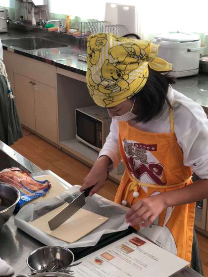 地で包みオーブンへ、しあわせな匂いに包まれながら、お片付けです。