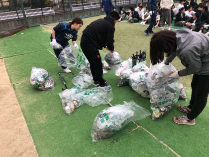 大阪マラソンクリーンUP作戦 其の二 公開日 2018/12/04 更新日 2018/12/04 お知らせ 清掃後、テニスコートに集合し、一杯詰まった戦利品?(ゴミ袋)を回収しました。 美化委員会の司会で先生から地域清掃について、ゴミ問題についてお話がありました。 特にタバコの吸い殻については、厳しい意見を述べられました。 生徒達も地域住民一人ひとりが気をつけて、地域を綺麗にしていく気持ちが大切な事をこ の取り組みを通して学んだと思います。 いいね(0)