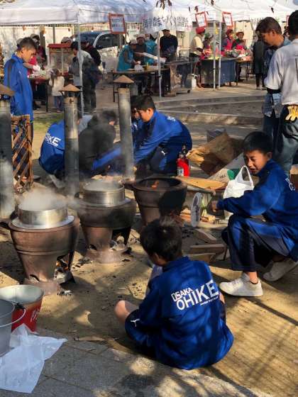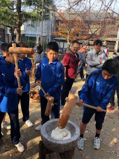 御幸森地域もちつき大会 公開日 2018/12/07 更新日 2018/12/07 お知らせ 午前中の中川地域もちつき大会に続いて、午後から御幸森第ニ公園で地域ふれあいもち つき大会にもつき手として、本校サッカー部とラグビー部がお手伝いさせていただきまし た。 地域の方からあちこちで、参加した生徒達に何丁目の誰々はんとこの息子やな、大っき なったなぁ、などの声掛けがあり、生徒も恥ずかしいやら嬉しいやらで、和気藹々と参加 させていただきました。 いいね(0)