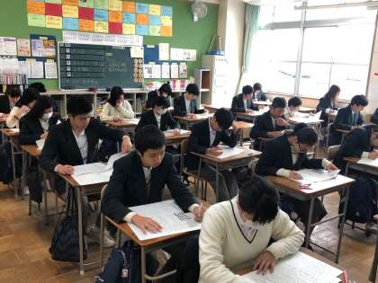 3年 第4回実力テスト 公開日 2018/12/06 更新日 2018/12/06 お知らせ 12月4日月曜日、3年生が第4回実力テストを受験しました。 先週の2学期末考査に続いて連続受験です。 この4回目の結果をもって、私学選択の重要な資料となります。 その受験校の選択と連動して、併願公立高校も考えていかなけねばならない、非常に意義 深いテストです。 しんと静まり返った教室に、運命のチャイムが鳴り、いざスタートです! いいね(0)