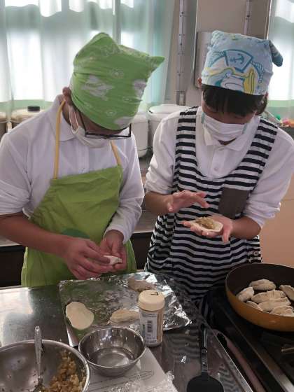 2年 調理実習 其の五 公開日 2018/12/12 更新日 2018/12/12 お知らせ 生地を皮に伸ばせたら、いよいよ皮に餡を包み、餃子の完成です。 餃子と言っても、ラザニア?おたべ?ぶ豚まん?と様々な手作りの品々がフライパンで不 安げに並んでいました。 いいね(0)