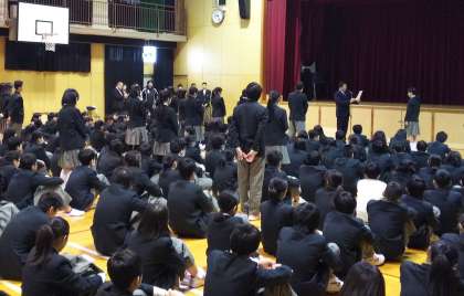 事無く、年明け7日には、生徒も職員も大池中学校全員が元気に三学期の始業式を迎えら