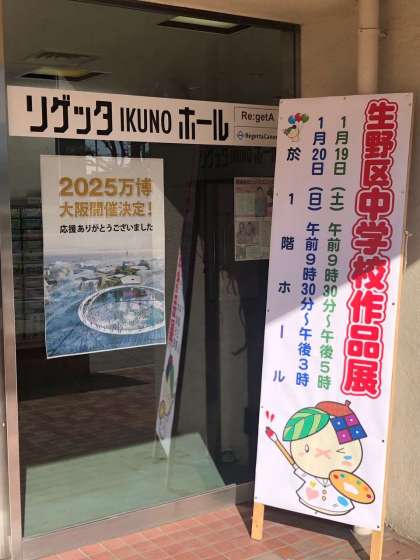 生徒たちの家族や広く生野区民の皆さんにも見ていただこうとリゲッタ生野ホールで作品