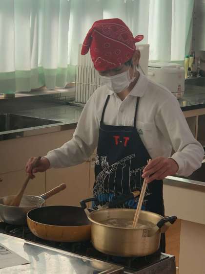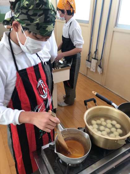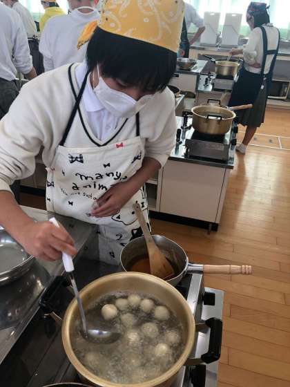 団子ができたら茹で上げて冷水へ、同時にタレを作ります。