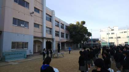 校長先生からは、3年の私学受験について、誰一人脱落する事なく、受験者全員が合格を勝ち取ったことへの賞賛と、大池中学校の全員が今月の生徒目標に受験者へのエールを掲げ、それぞれがそれぞれの立場で、3年生を支えた成果であったことを話されました。