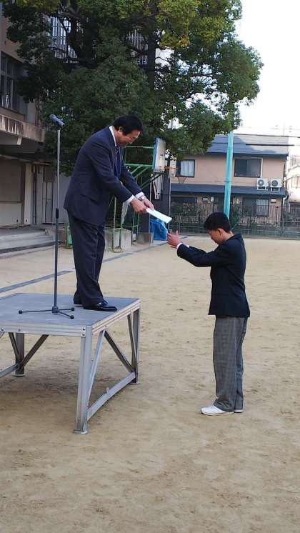 今日は定例の全校集会が、暖かく早春の清々しい中、行われました。