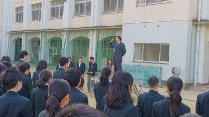 校長先生から、厳冬からいよいよ春へ季節が移り変わるなか、これから迎える3年生の卒業式に向けての心構えが語られました。