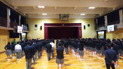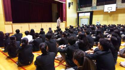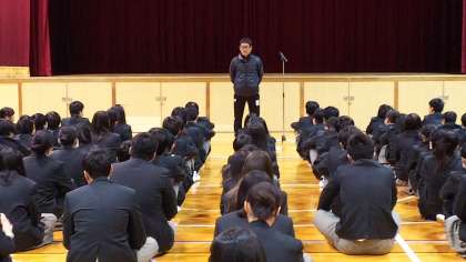 最後に生徒指導主事の戎先生から、今日が3年生にとっては全校集会参加が最後になる事、1・2年生に先輩としてどんな背中を見せるのか?