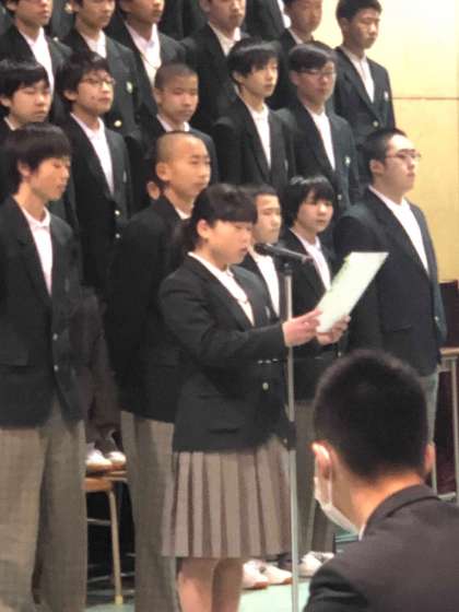 素晴らしく、心のこもった2年生の合唱の後、2年生徒代表から先輩から受け継ぐ『大池魂』についての決意が述べられました。
