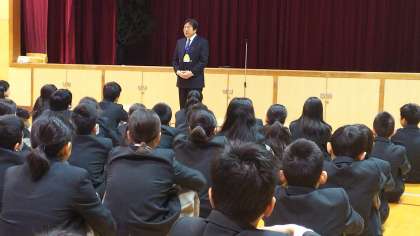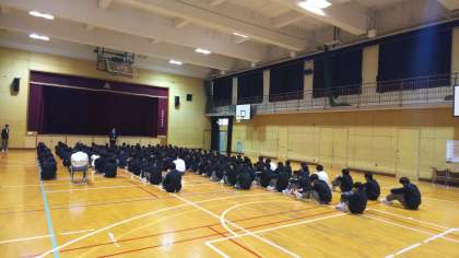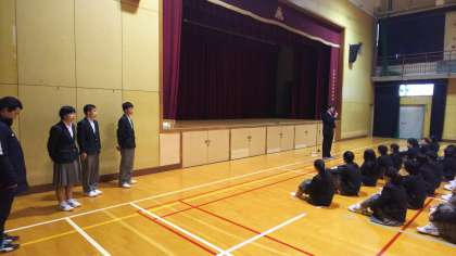 寂しい感じが漂う集会でしたが、校長先生から先日の第72回卒業式での様子を、会場の都合で出席できなかった在校生に、在校生代表と卒業した先輩達の立派な所作について、お話がありました。