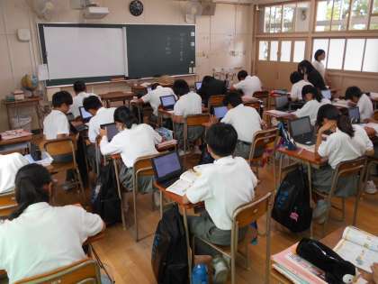 国語科は新しい単元についてタブレットで調べ学習をしています。