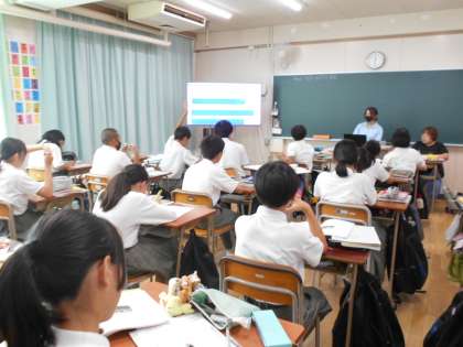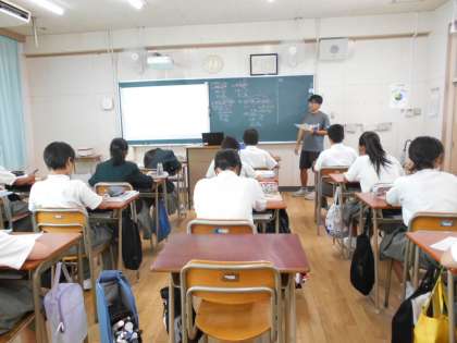 9月17日 1年生授業風景 公開日 2025/09/17 更新日 2025/09/17 できごと 1年生の授業風景です。 1組は美術です。自分の夢の世界を表現する授業です。一人ひとりさまざまな夢を抱いています。どんな作品になるのか楽しみです。 2組は英語です。英語の中身も少しずつレベルアップしてきました。単語の並べ替え問題に挑戦しています。 3組は数学です。比の分野を取り扱っています。分配法則を使って問題を解いています。 それぞれのクラスが頑張って授業を受けています。 いいね(0)