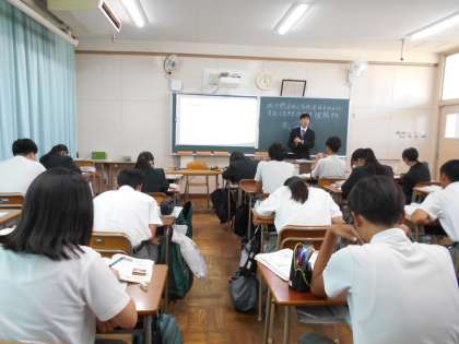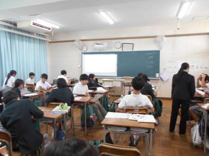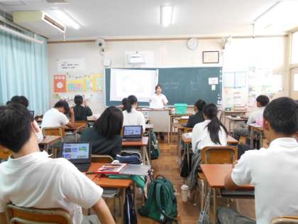 国際事情が複雑化し、平和が脅かされる中、知識を身につけ自分の考えをまとめ、発信していくことは大切です。実習生による授業です。