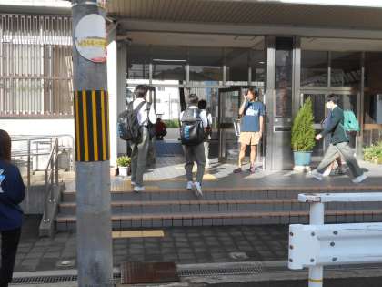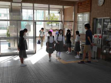 正門玄関では、生徒会役員があいさつ運動を行ってくれています。