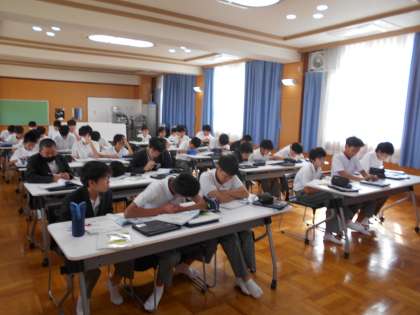 男子は保健体育の授業です。座学ですが、こちらも真剣な様子で授業を受けています。