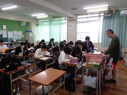 2年1組は国語の授業です。古文の分野を学んでいます。お歯黒は貴族の文化なんですね。古文を読み解くと、日本の文化を深く知ることができますね。