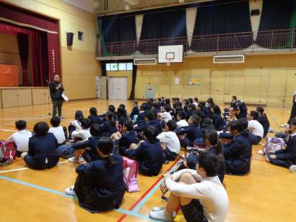 本日は大池小学校の6年生が本校に体験授業を受けに来てくれました。1学期には、部活動体験をして中学生と交流を行いました。そして、今回は実際に中学校での授業を体験してもらいました。国語・数学・英語・音楽の4つが行われました。小学生は少し緊張した、そしてワクワクした表情で授業を受けていました。4月に大池中学校に入学してきてくれることを心待ちにしています。