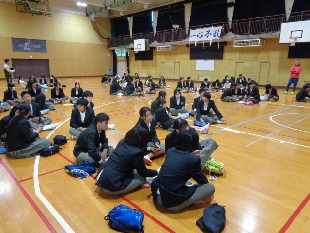 体育館で、それぞれのクラスでチームをつくり、チーム対抗戦が繰り広げられました。