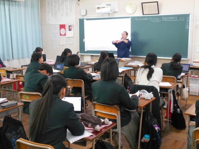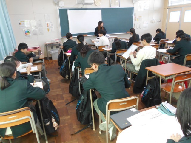 3組は英語科で質問に英語で回答するコミュニケーション学習をしています。