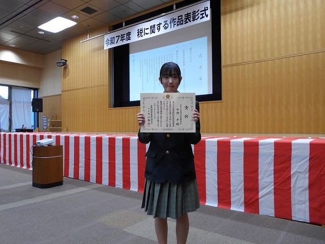 本校3年生の今野さんが、生野納税貯蓄組合連合会会長賞を受賞しました。