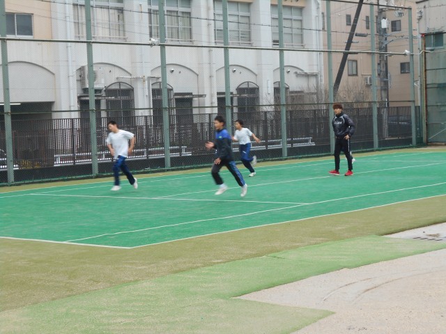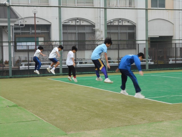 サッカー部は、雨上がりのためサーキットトレーニングをしています。