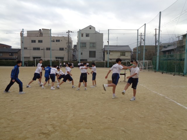 1年生の授業風景です。寒い中、駅伝大会に向けて長距離に挑戦しています。