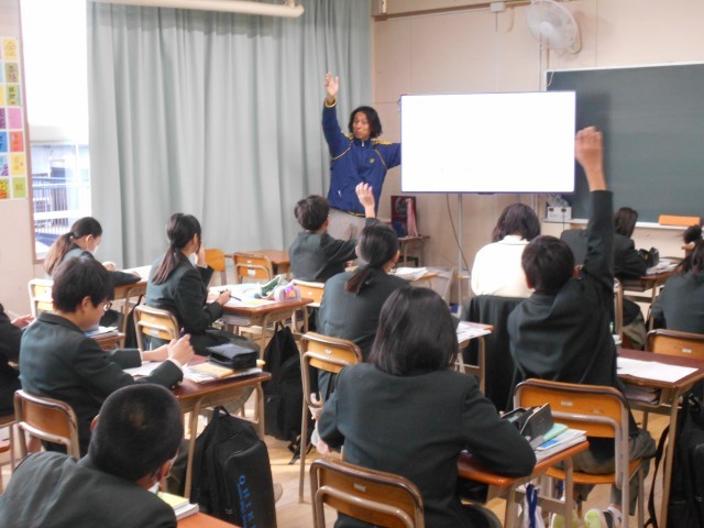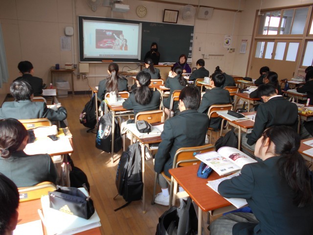 3組は英語科でICT画面を見ながら会話を学んでいます。
