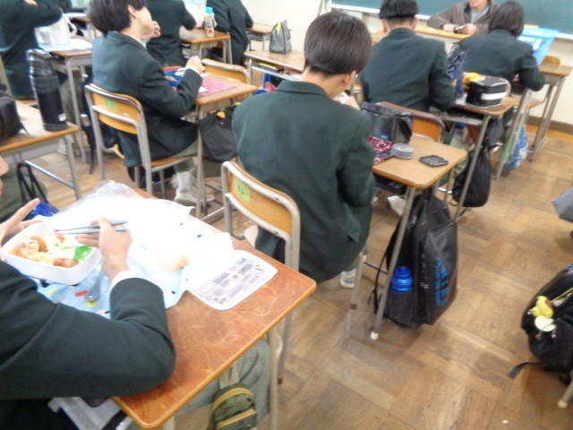 各ご家庭で用意していただいたお弁当を美味しそうに食べています。