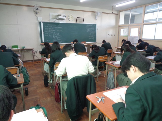 駅伝大会のこの日、3年生は学年末テスト最終日に臨んでいます。