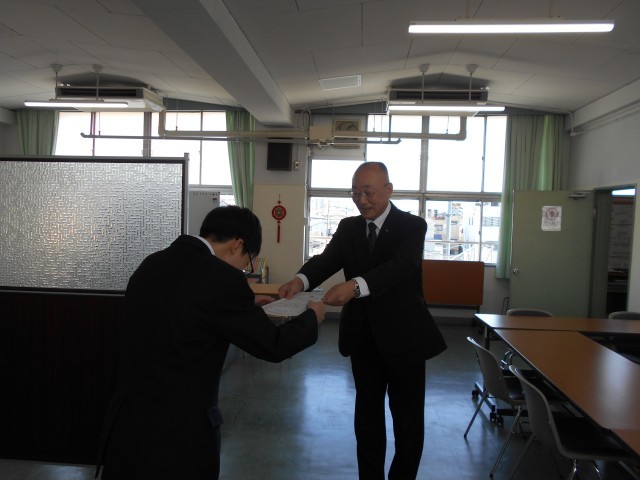 所定の課程を終えた生徒に修了証を渡して修了式を行いました。