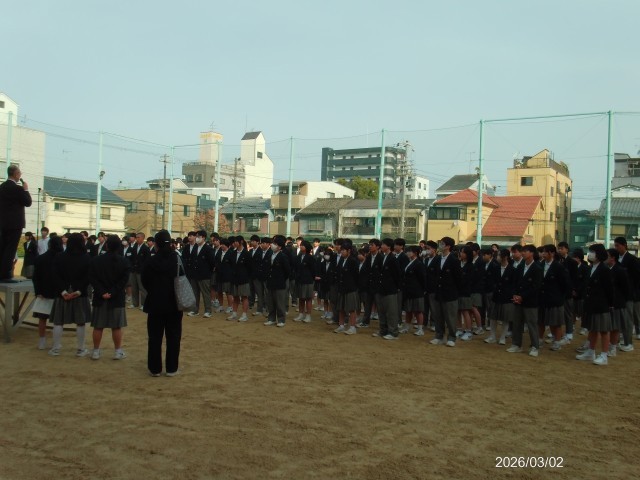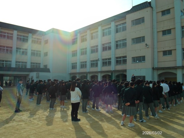 今週も全校集会でスタートしました。3月に入り、卒業式まで2週間となりました。