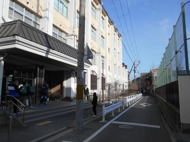 気持ちの良い青空が広がる正門付近の登校の様子です。