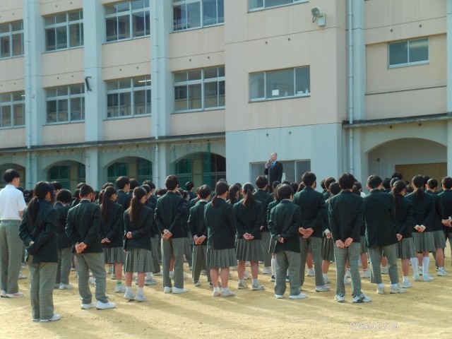 集会での「万里一空」の思いで、学校生活を大切に過ごしてほしいと話がありました。