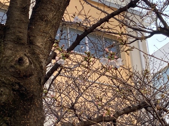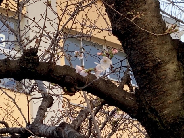まだまだ見ごろではありませんが、桜が開花しました。