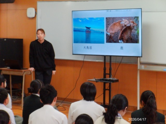 今日は、宮島の説明とグループ決めを行っています。
