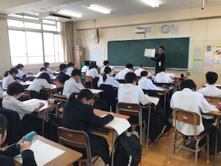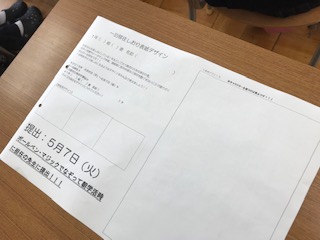 5限目は全体の説明を行い、6限目は教室へ戻ってしおりの表紙絵のデザインに取り組みました。いい作品を期待しています。締め切りは5月7日です。